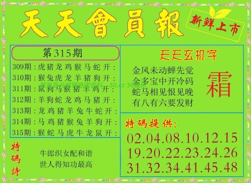 315期九肖狗猪马猴羊龙蛇牛开:虎04
